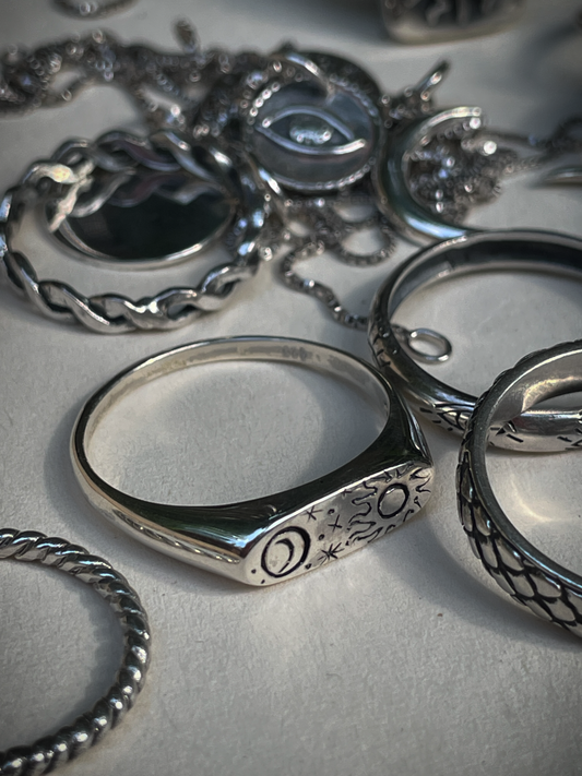 Our jewelry does not contain healing powers, was not blessed under the full moon, and has not been polished with sun water... but it is ethically made by local silversmiths and we hope it will help you to realize that whatever magic you're searching for already exists within you.