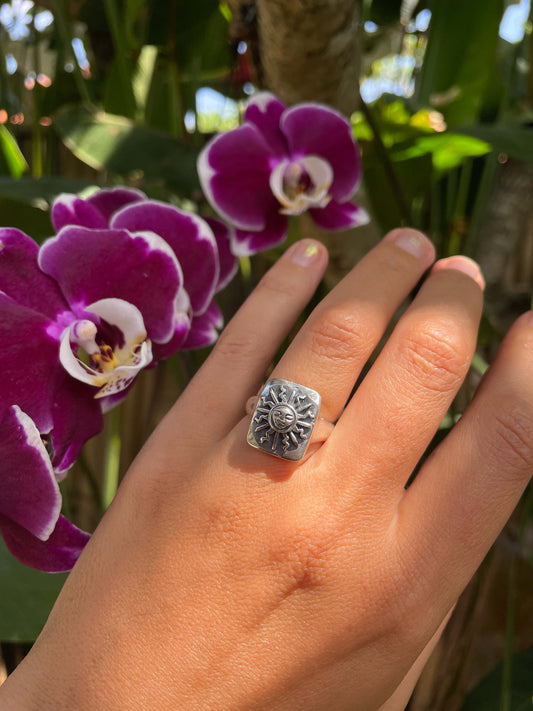 Sun Medallion Ring in Silver