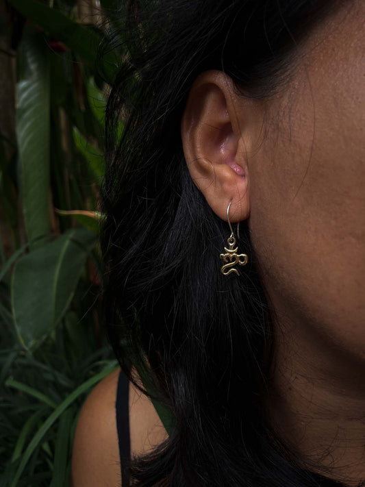 Bali Om Earrings in Brass