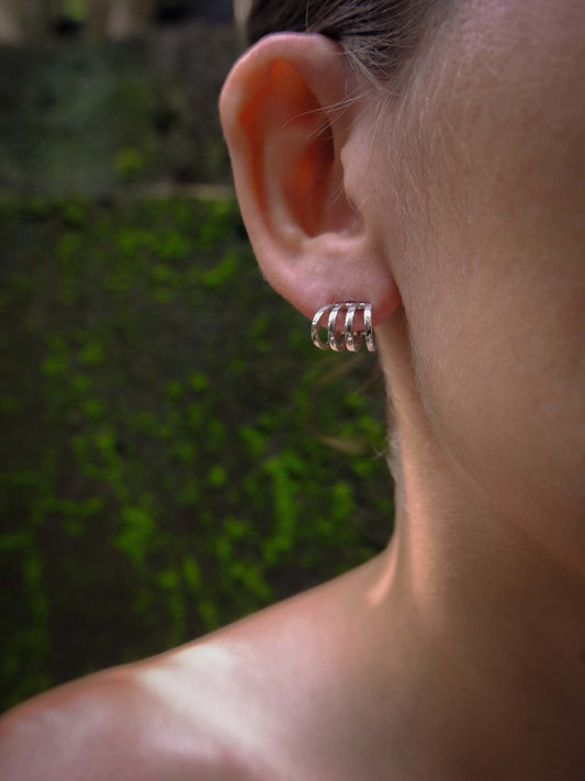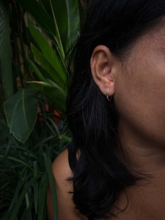 Cresent Stud Hoops in Silver